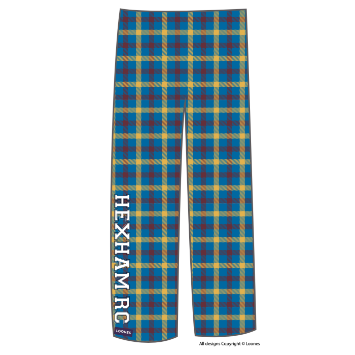 Hexham Rowing Club Loones. Customised lounge pants in club colours made from yukon fleece. These super warm and cozy lounge pants are great for traveling, rigging or lazying about in. The best trousers, pants down!! Elasticated waist with drawstring and side pockets. These are a long and baggy fit for comfort see the specific sizing chart below for more information.