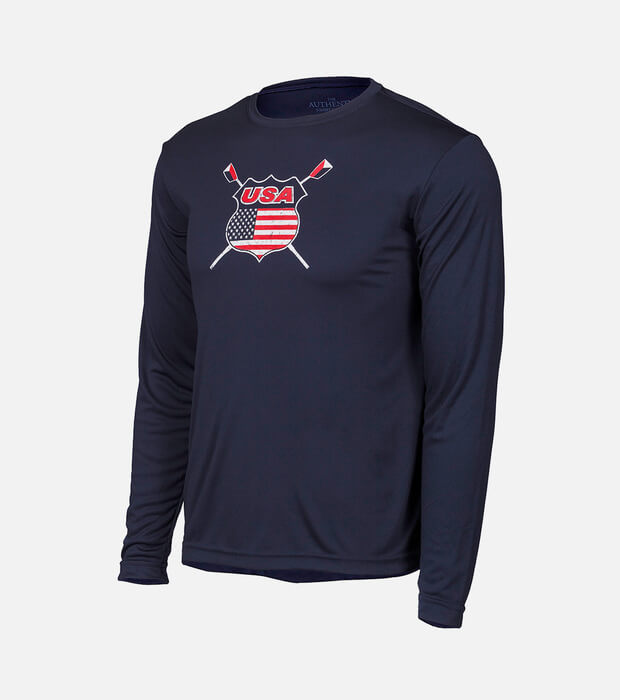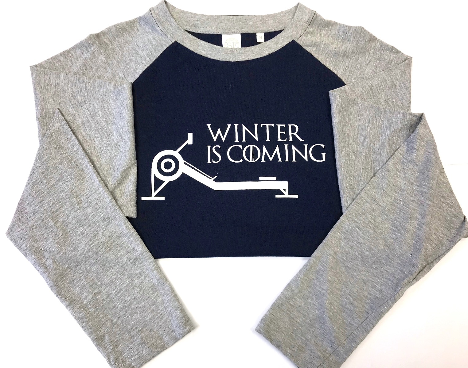 Winter is coming, and so is the erg! 100% cotton t shirt in navy blue with grey contrast sleeves and collar.