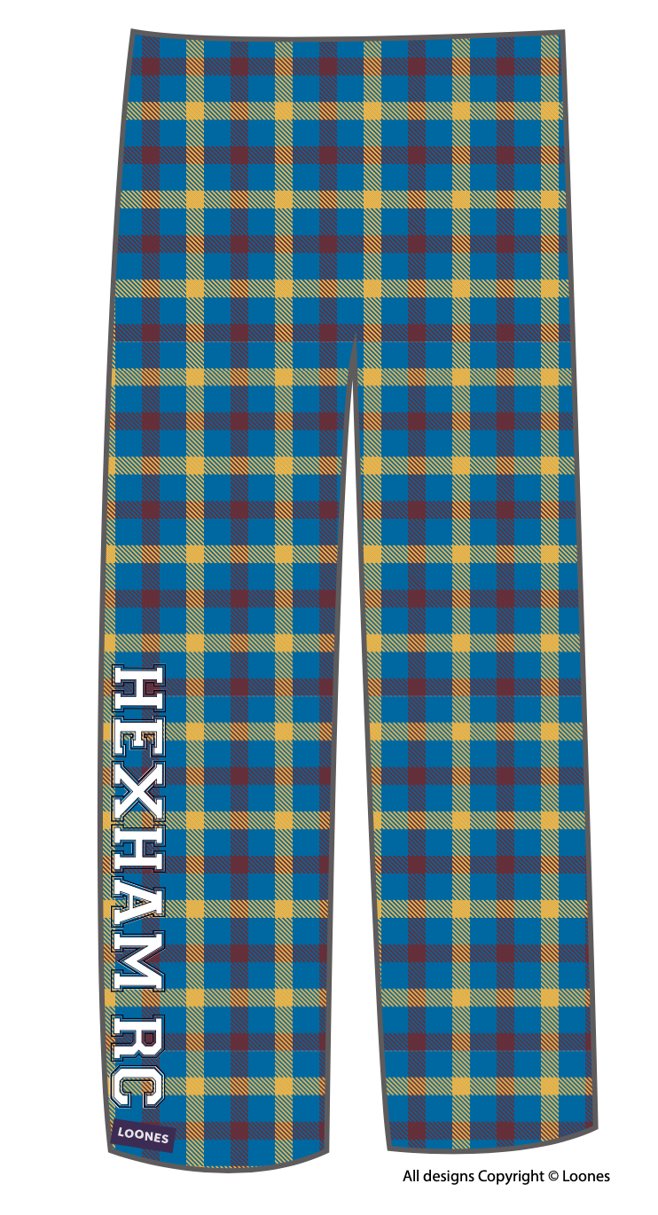 Hexham Rowing Club Loones. Customised lounge pants in club colours made from yukon fleece. These super warm and cozy lounge pants are great for traveling, rigging or lazying about in. The best trousers, pants down!! Elasticated waist with drawstring and side pockets. These are a long and baggy fit for comfort see the specific sizing chart below for more information.